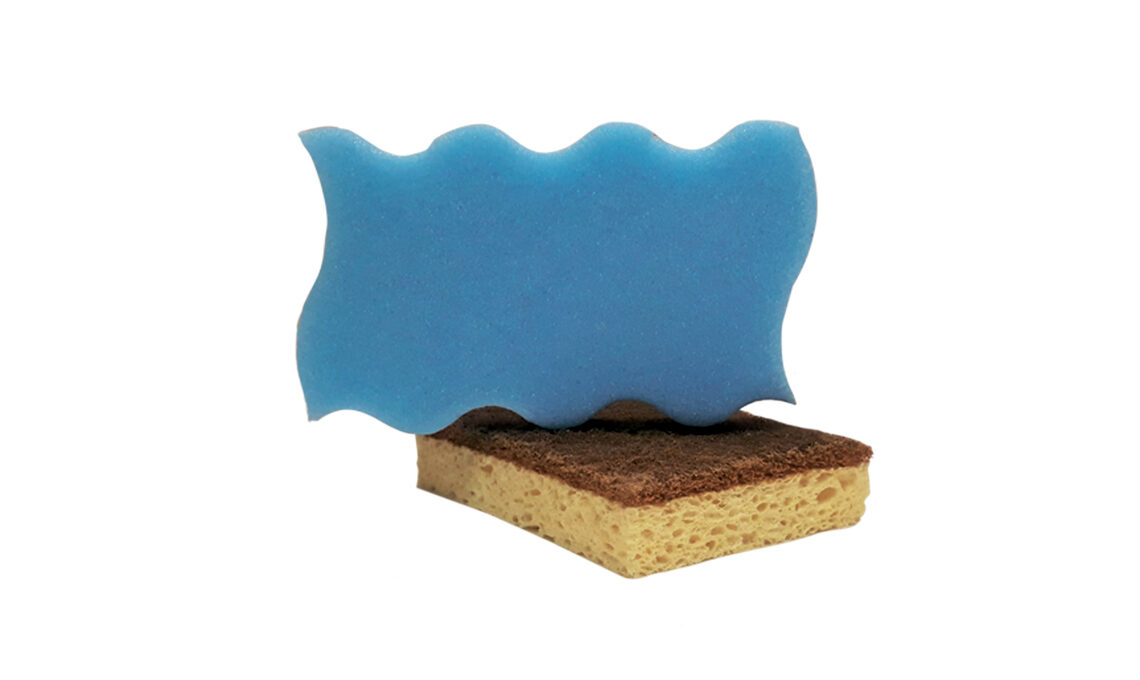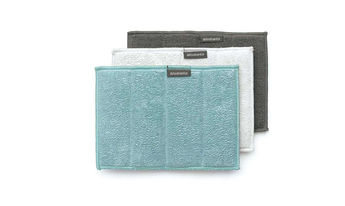 Superfici della cucina sempre brillanti con la spugna rivestita in morbida microfibra [Brabantia, cm 16x22 € 4,90/3 pezzi].