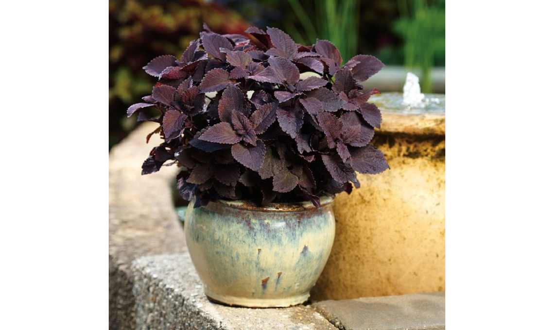 Coleus ‘Black-Prince’ è coltivato per il suo fogliame viola scuro e per piccoli fiori.