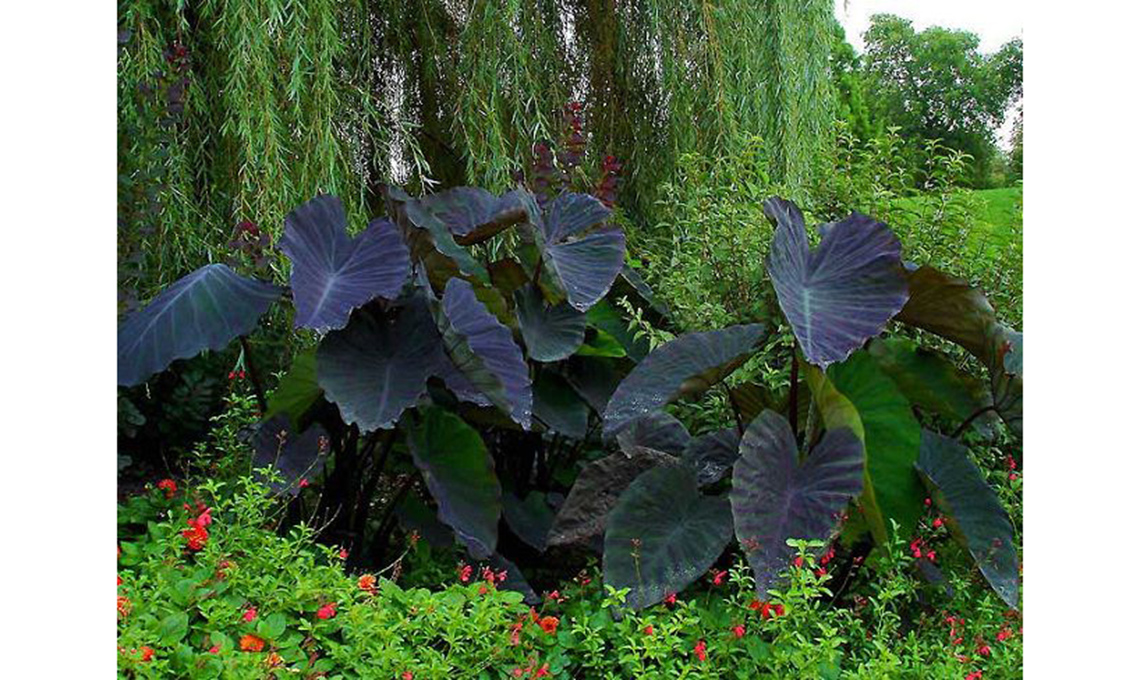Colocasia 'Black Magic'. Da giardino umido e ombreggiato, ha grandi foglie molto decorative. » waternursery.it