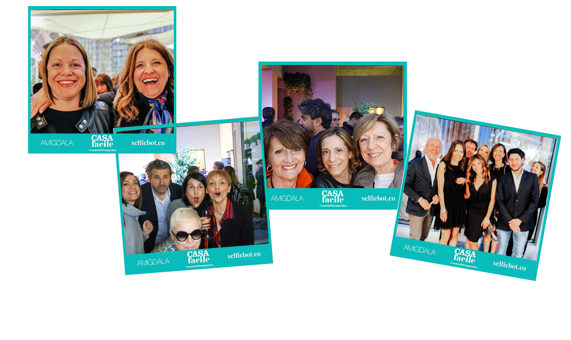 Tutti pazzi per il robot dei selfie di Amigdala Experience Design Studio. Nei selfie, da sinistra: Annalisa Censini, Marketing Manager CF, e Stefania Ghizzardi, Advertising Manager, i team di Wilson&Morris, DaunenStep e Tescoma con Davide Mondo, CEO di Mediamond, e Corrado Sozzi di Mediamond.