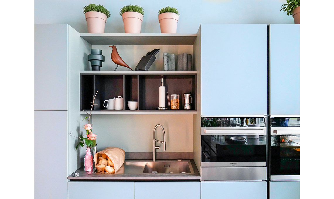 Siamo nel quartiere del Bosco Verticale di Stefano Boeri e anche la nostra cucina l’ha disegnata lui (con un albero di limone in mezzo alla penisola!) [Oasi di ARAN Cucine].