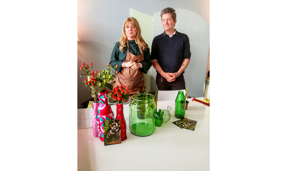Il flower artist Giovanni Ratti e Silvia Magnano parlano di bacche. Sulle bottiglie, l’idea DIY: le ‘cover’ di seta [Mantero].
