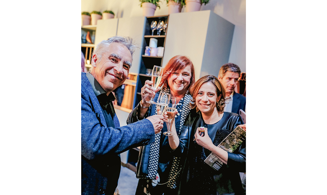 Il Direttore brinda con Giusi Silighini, Instagram Editor di CF, e Marco Tazzi, fotografo.
