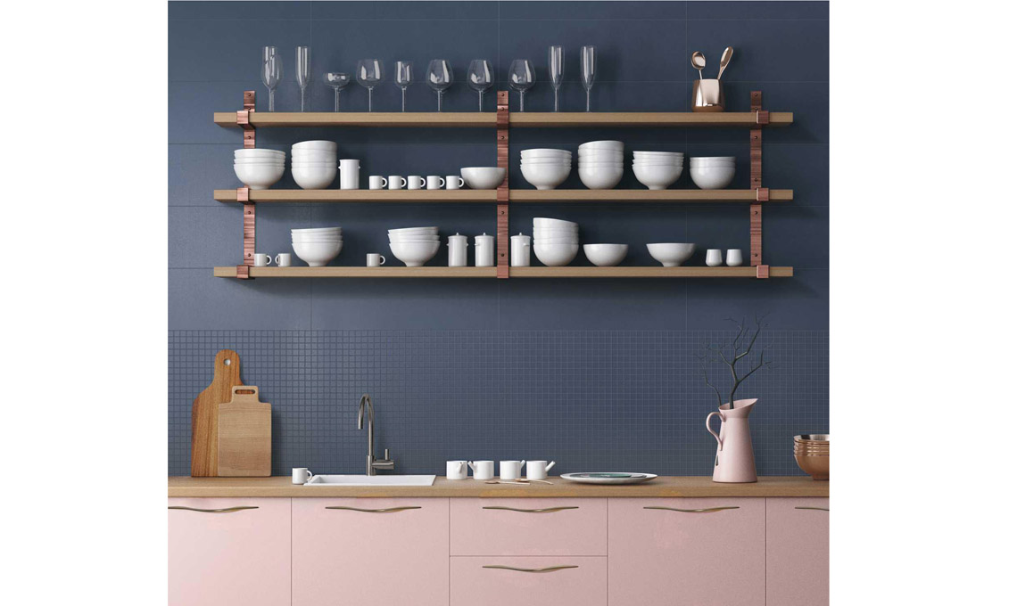 Rivestimento effetto tessuto per la superficie ceramica Outfit arricchite da pattern a motivi floreali e geometrici, ispirati a tessuti Kilim, Jacquard e mosaici. Disponibile in 7 colori [Marazzi, formato cm 25x76].