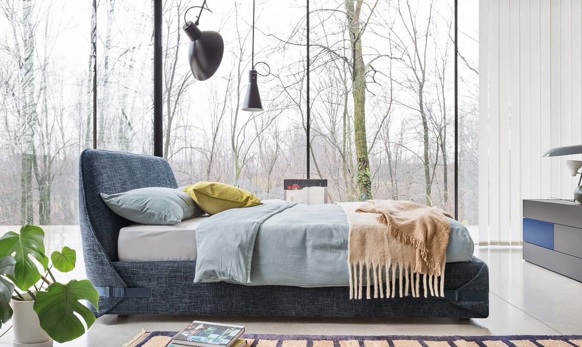 Letto Hug disponibile anche con Secret Box®, un cassetto su guide e un vano contenitore che scorre all'interno del telaio del letto [Noctis, cm 210x222x110h da €1.630].