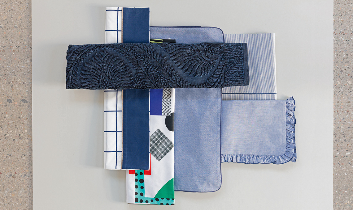 Spugna Funny Black [€29,90 la coppia], set lenzuola in percalle di cotone Chequered [€109], set copripiumino Punto e Virgola [€165], set lenzuola Fil à Fil [€169], completo copripiumino Oxford [€215] tutto [Fazzini].