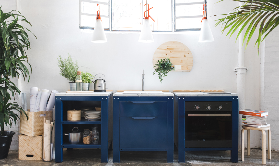 Composizione cucina freestanding in metallo [Very Simple Kitchen, prezzo variabile a seconda di finiture, top ed elettrodomestici].