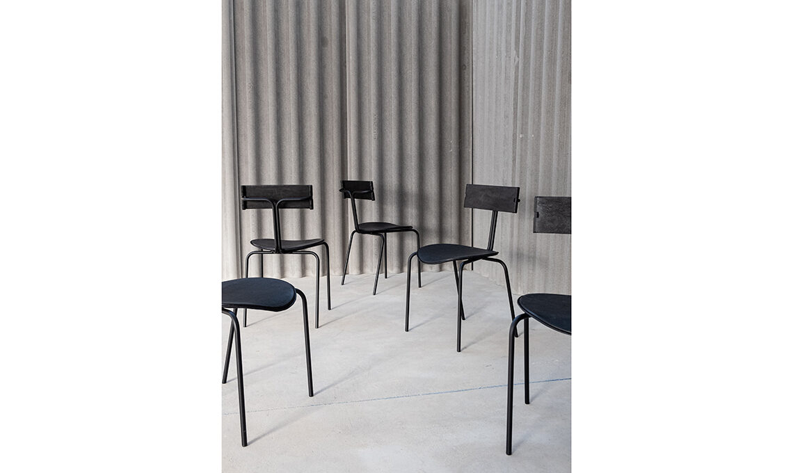 RENDEZ-VOUS Sedia Acciaio verniciato a polvere, compensato piegato e pelle