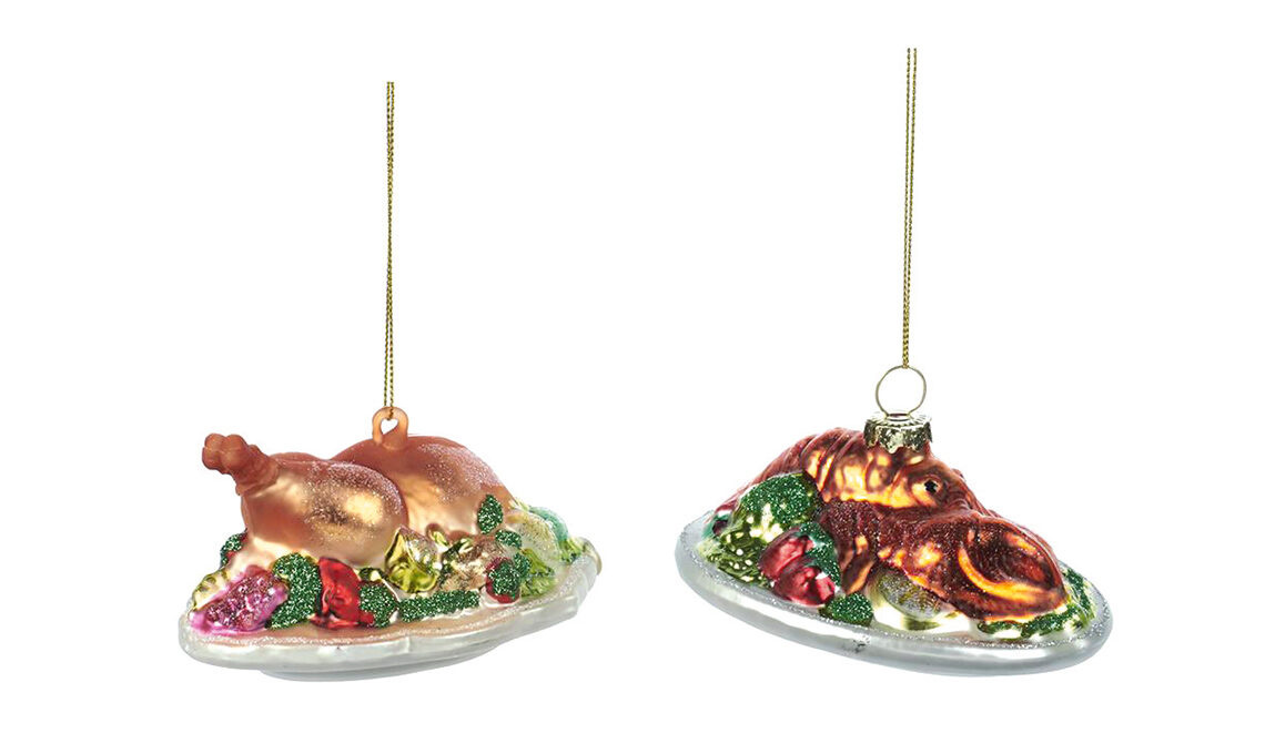 Tacchino della collezione Santa’s Kitchen e aragosta [Goodwill, ø cm. 6,35 € 32/2 pezzi].