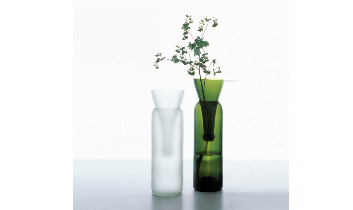 Vasi in vetro a forma di bottiglia con collo capovolto [Artecnica, €58, su wearunique.com].