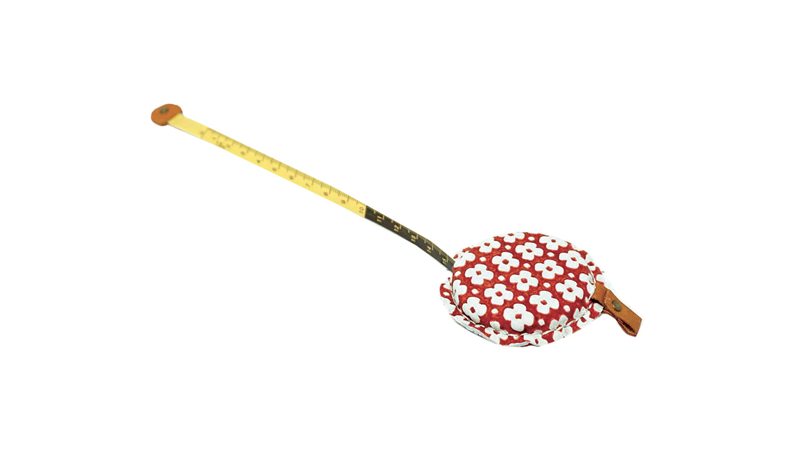 Nella custodia in tessuto e con doppia scala in cm e pollici [Liberty London, cm 150 € 11,40].