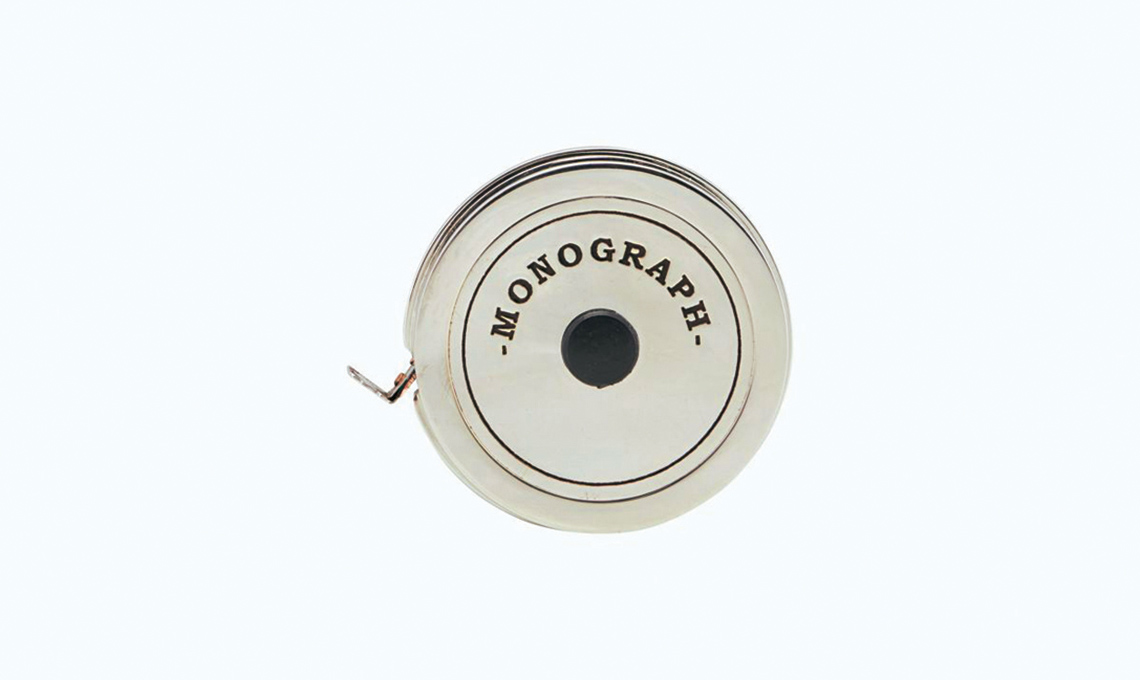 Di design, con sottile nastro riavvolgibile in custodia di metallo [Monograph, cm 200 € 25].
