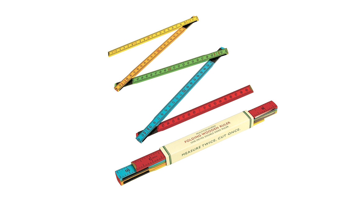 Pieghevole e multicolore, con la doppia scala in cm e pollici [Rex London, cm 100 € 5,70].