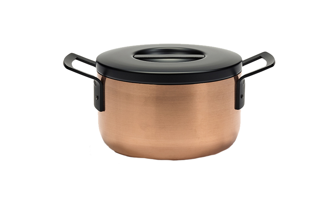 Esterno in rame e coperchio piatto con maniglia integrata, design Piet Boon [Serax, ø cm 24 € 441].