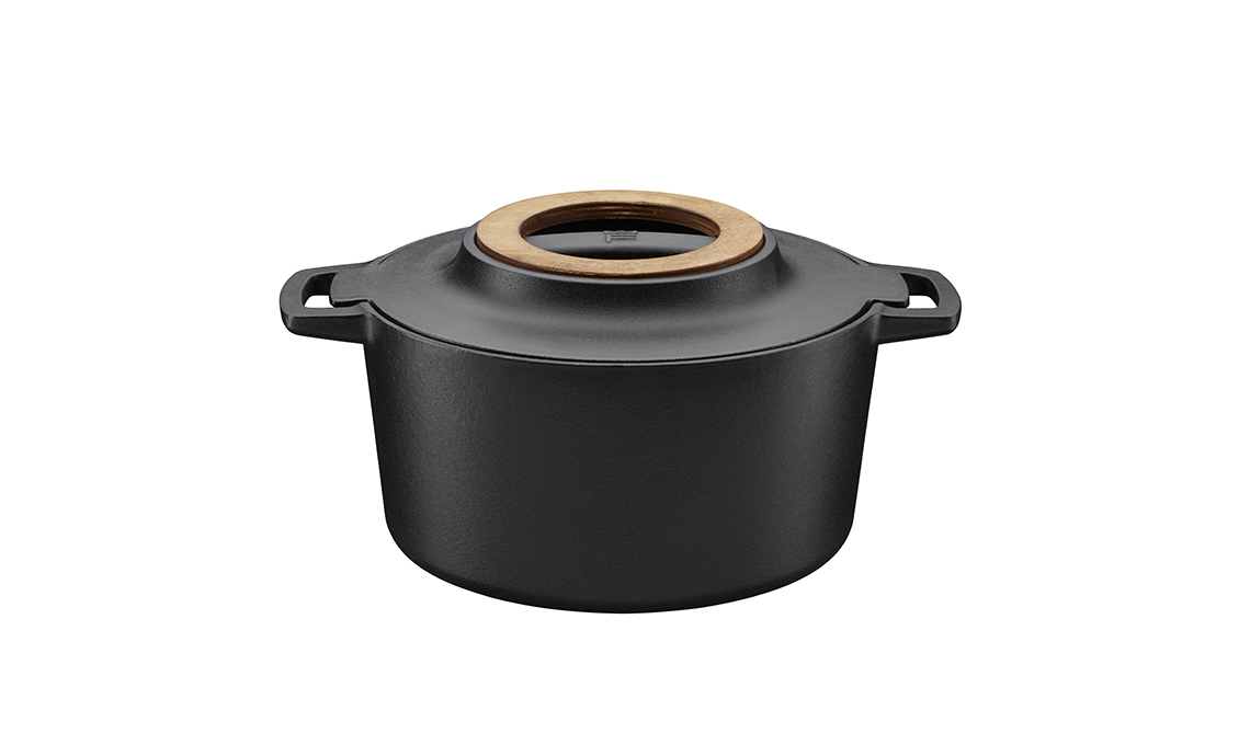 Norden, in ghisa con sottopentola in legno integrato [Finnish Design Shop, ø cm 30 € 169].