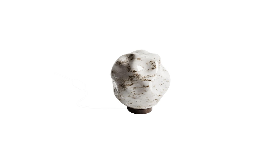 Stone, lampada da tavolo in vetro di Murano lavorato a mano e ottone [Il Fanale, ø cm 25 € 671].