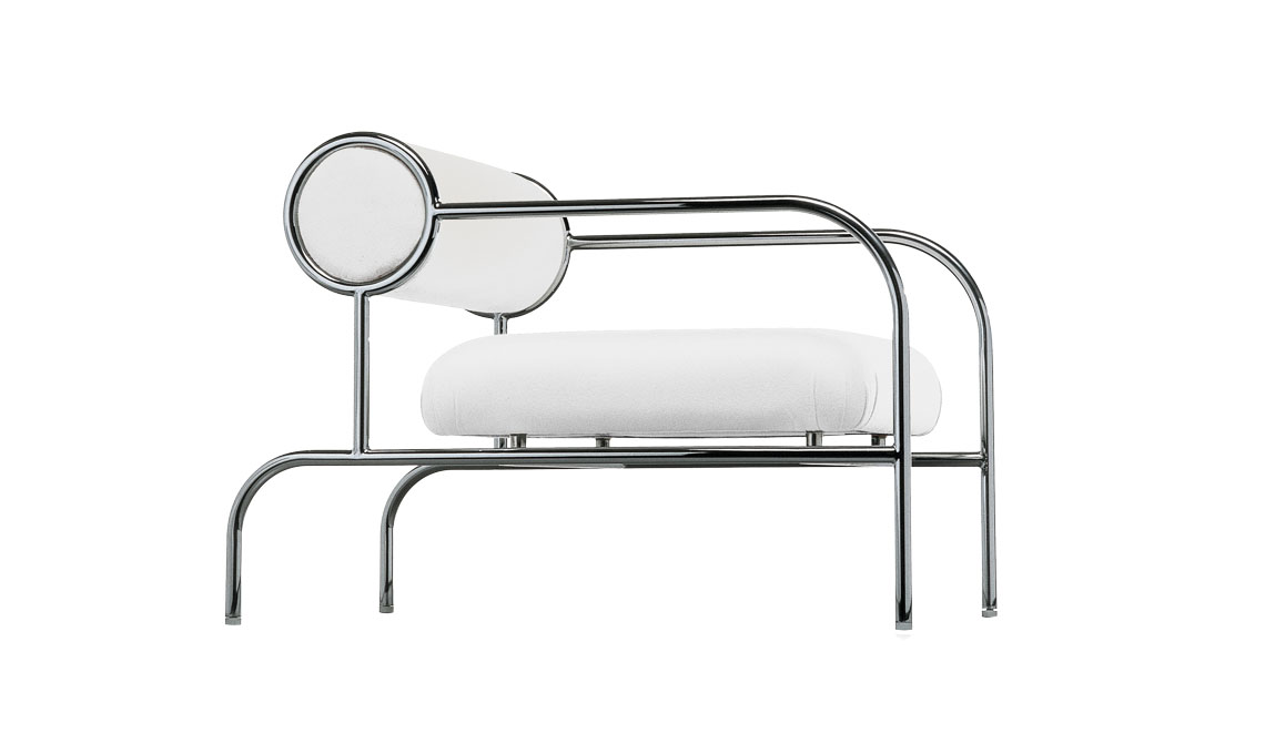 Sofà with Arms, icona Anni ’80 in tubolare di metallo cromato [Cappellini, cm 92x62x65,5h]