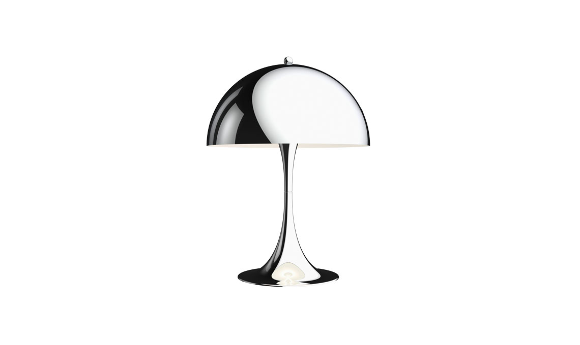 La mitica Pantella, design V. Panton 1971 in versione cromata [Louis Poulsen, ø cm 25x33,5h]