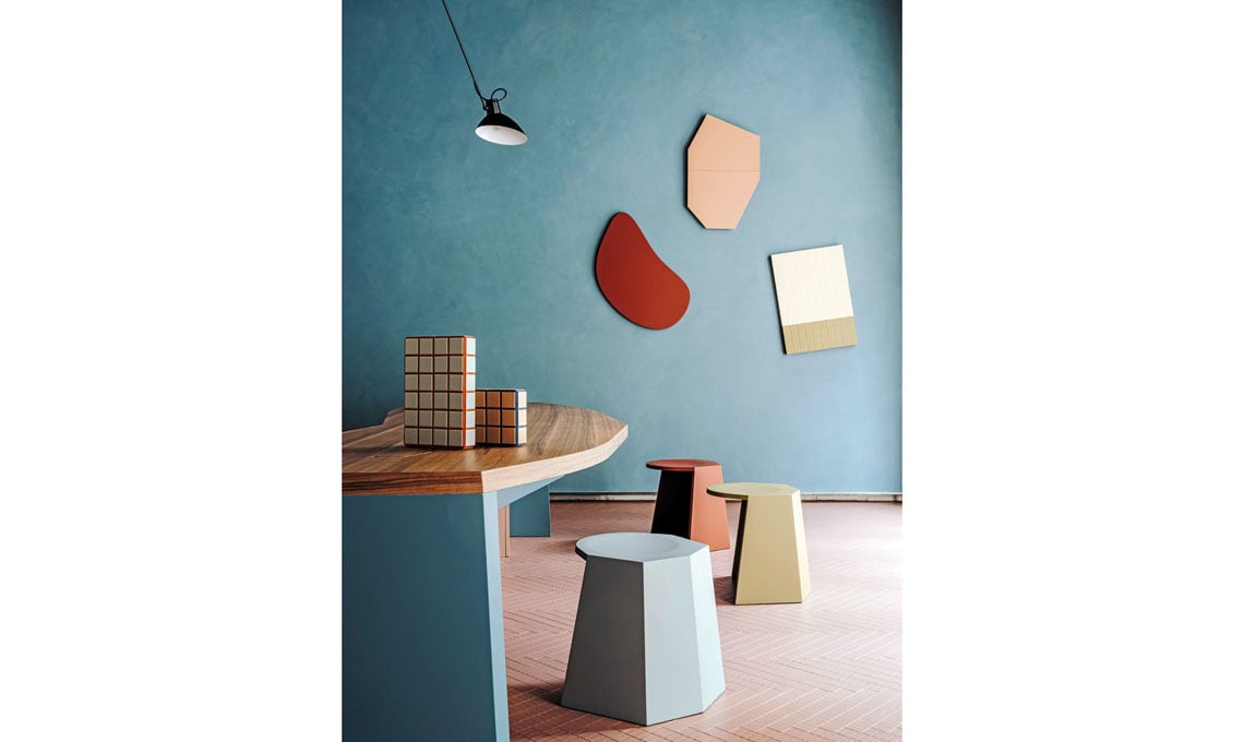 L’anno scorso, nelle vetrine di questo showroom, ho curato l’installazione ‘Plinthos’. Per ‘Strato’, pensando al restyling dello showroom, ho voluto dimostrare che, con i materiali e i colori dell’azienda, è possibile rinnovare ciò che ci circonda, senza cancellarlo. ‘Stratificazione’ è una parola che mi piace, significa che non dobbiamo per forza produrre qualcosa di nuovo, se si può valorizzare quello che già esiste, migliorandolo.