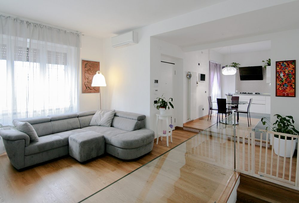 Una famiglia con 3 figli ‘costretta’ in 70 mq compra l’appartamento al piano di sopra. Unite le due case con una scala, ecco come sono stati ridistribuiti gli spazi