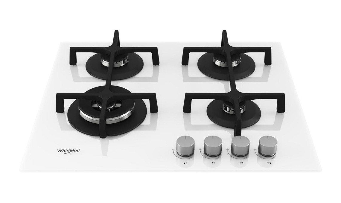 Il piano cottura a gas GOA 6423 WH ha 4 bruciatori Super Efficienti che, grazie a fiamme verticali, riscaldano in modo più rapido e diretto [Whirlpool, cm 59x51].