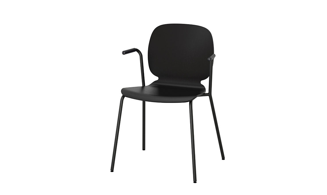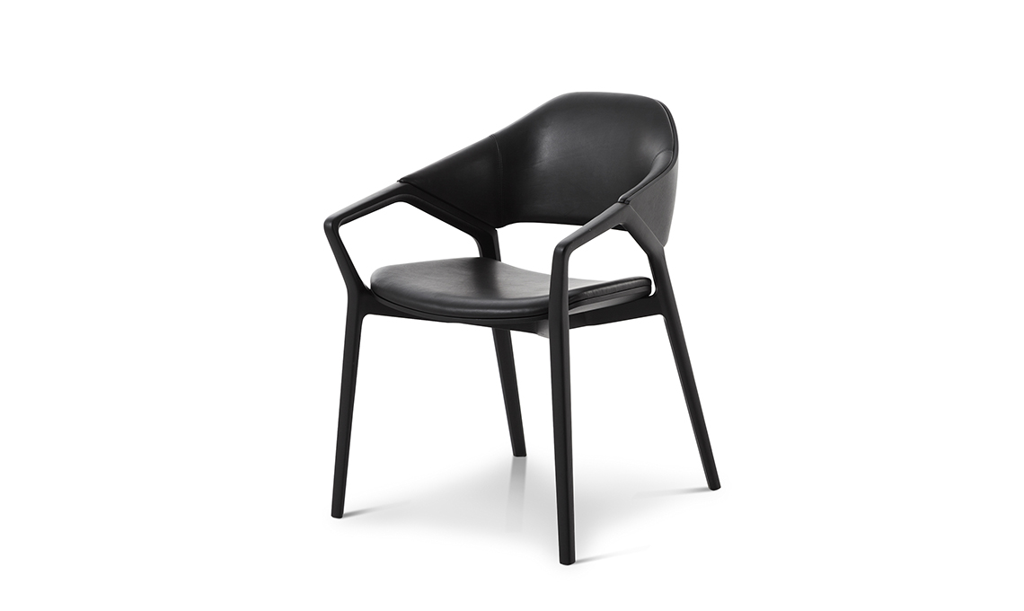 Con braccioli, in frassino tinto nero e pelle, design Ora Ito.
