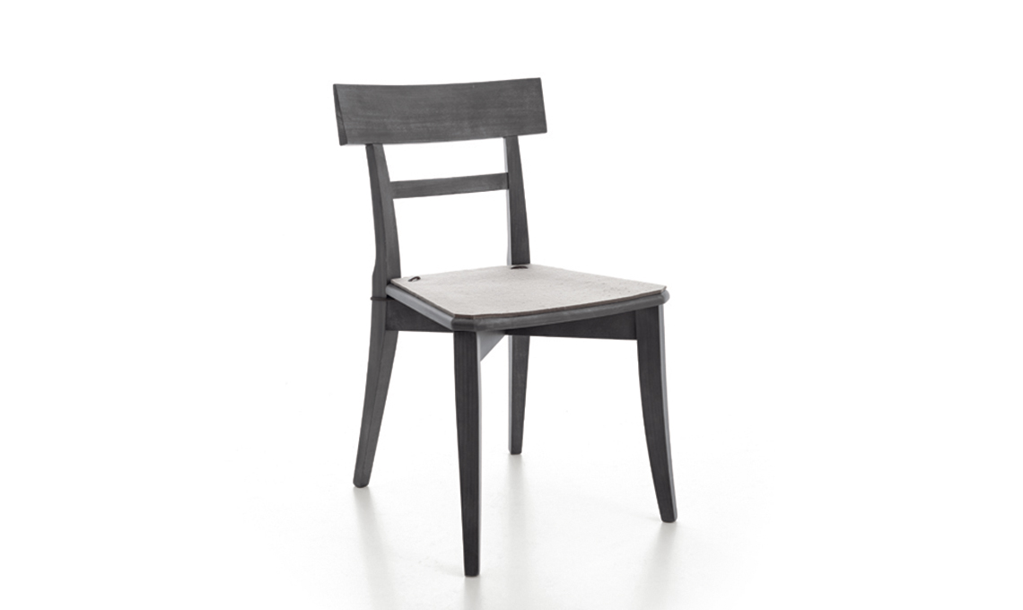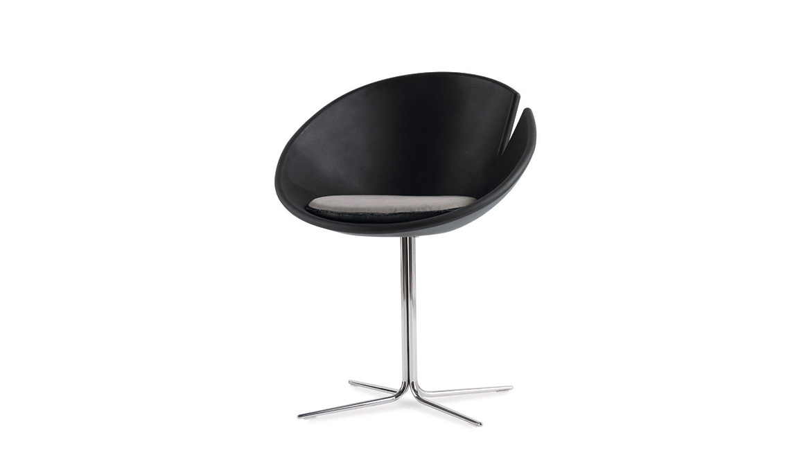 Scocca sagomata e anatomica in cuoio rigenerato e gambe in metallo.