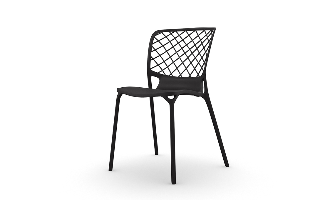 Impilabile in nylon con schienale effetto rete, è disponibile in 7 colori.