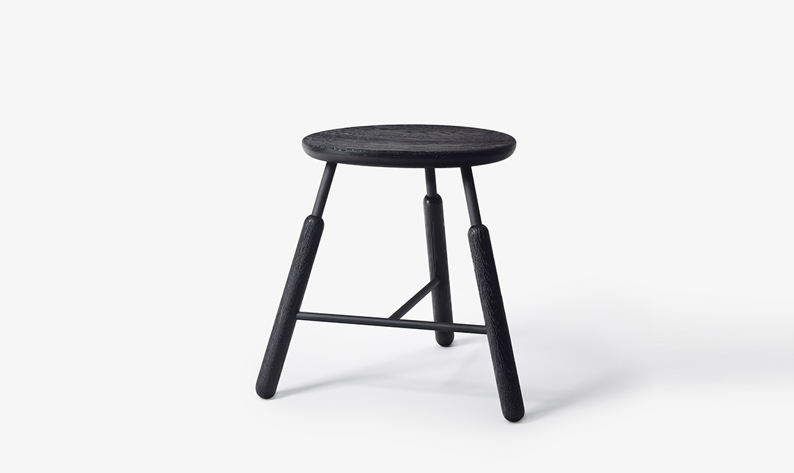 Mood nordico per lo sgabello in acciaio e rovere tinto nero a effetto invecchiato.