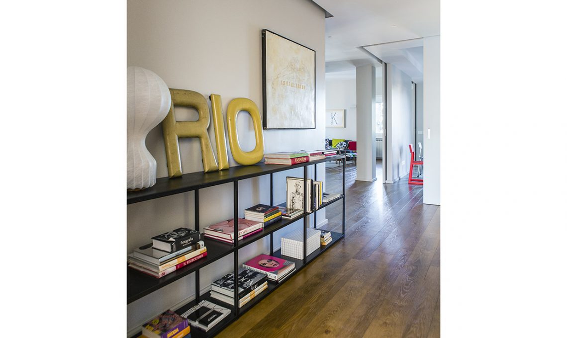 Sulle mensole Botkyrka [Ikea, cm 80x20x20h €19,90 cad], ex voto [Funky Table] e stampa [Galleria L’Affiche]. Pomelli Dots [Muuto], stampa Bambi and Heels di Paper Collective [su » posterclub.com]. Passatoie [Kasthall]. Guarda altre immagini di questa casa.
