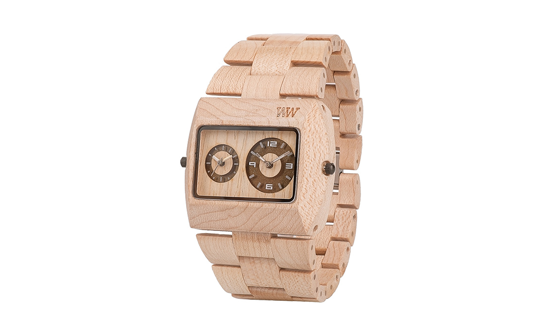 Ricavato da un tronco di quercia, Forestime è un eco-orologio da tavolo [Rio Lindo, cm Ø 9-12x6h da €33,10].