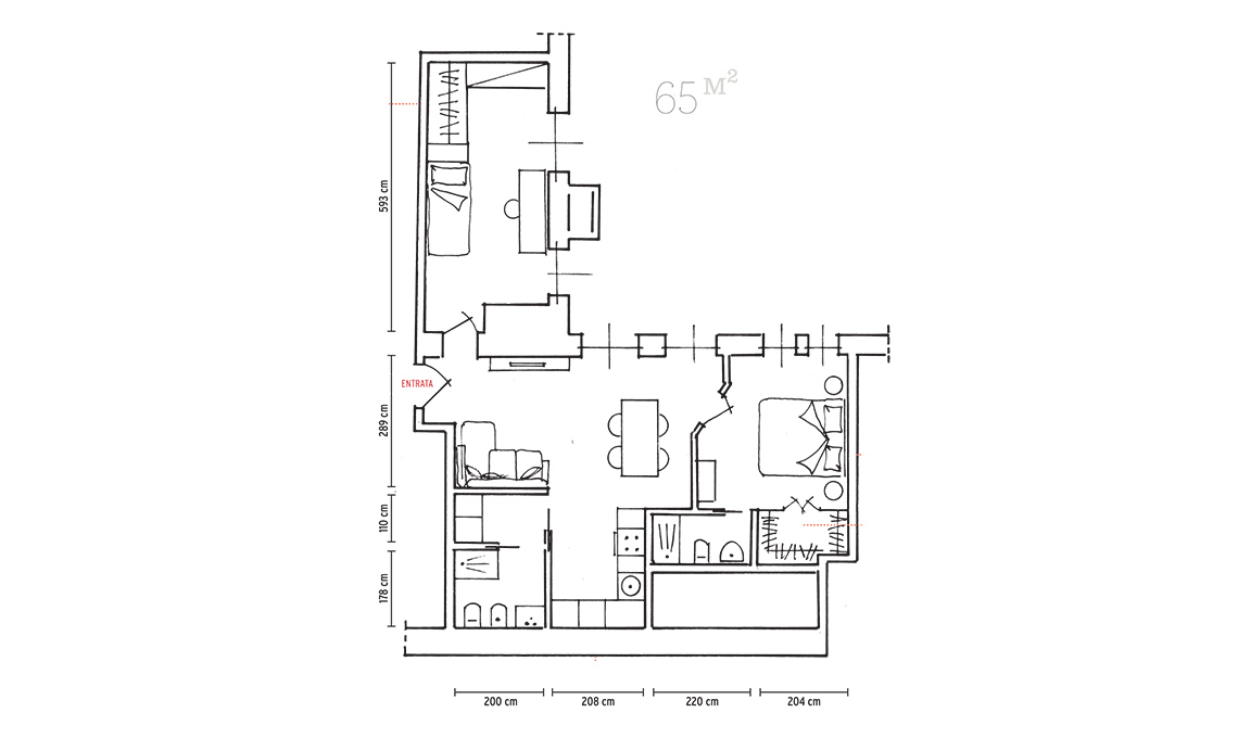 PROGETTO CITTÀ di Amodo, studio di architettura: trilocale trasformista per affitti brevi