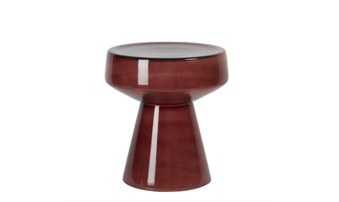 Tavolino Dakwa in vetro bordeaux [Conforama, ø cm 37x44h].