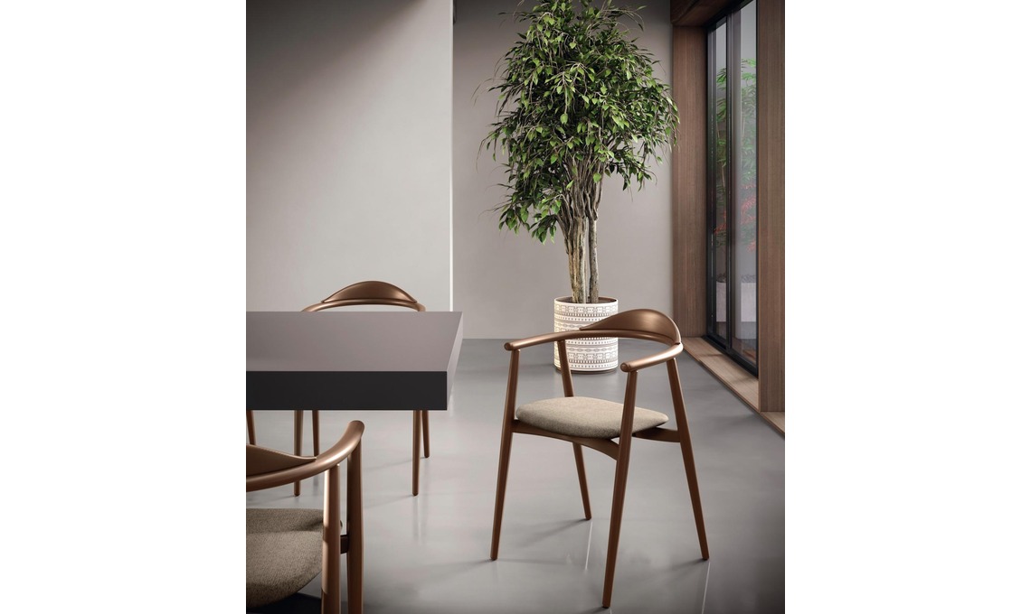 Sedia Pochette in Rovere Pecan rivestita in tessuto Atena 02 [Scavolini, cm 56x50x75h].