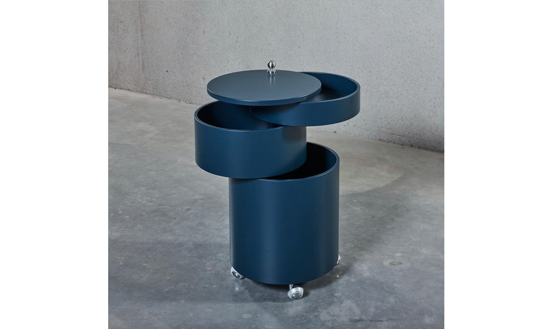 Carrello Barboy Blue, riedizione del modello di Verner Panton del ’63 [Verpan, ø cm 38x72,5h].
