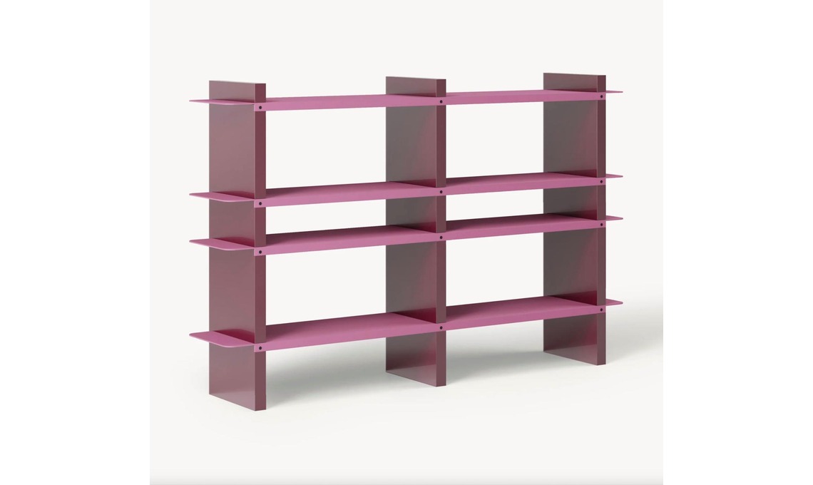 Libreria Rami in metallo verniciato rosso vino lucido e rosa opaco [Westwing Collection, cm 160x32x101h].