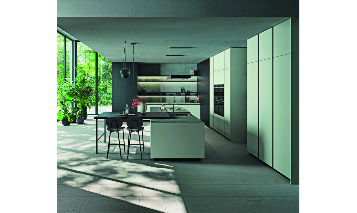 Questa cucina è Jeometrica di [Scavolini] qui in color Selva