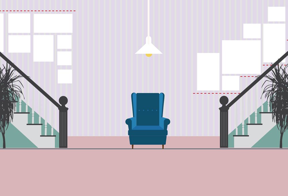 - Quando sei convinto, prendi le misure e metti i segni sul muro usando una squadra e una livella. Attenzione a rispettare non solo le altezze ma anche le distanze tra un quadro e l’altro. Questo è un dettaglio importantissimo per creare un’armonia di insieme.