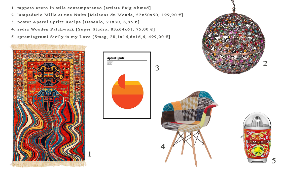 - Tappeti grafici. Il mio consiglio è quello di usare il colore su pochi ma strategici oggetti all’interno di un’abitazione. Avete mai pensato di sfruttare il tappeto come fonte cromatica? Ne esistono di tutte le dimensioni e fantasie, da quelle più artistiche a quelle tinta unita. Qualunque tipo di tappeto sceglierete l’obiettivo è sempre e solo uno: donare carattere al pavimento e di conseguenza all’intera casa.