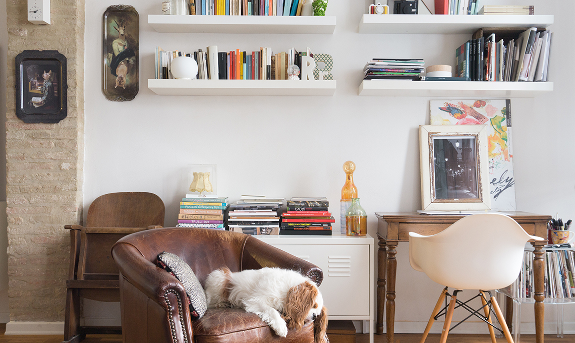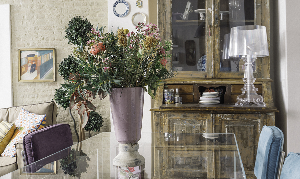 L’arredo è in continuo work in progress: un mix di stili, colori e materiali che cambia disposizione seguendo l’umore