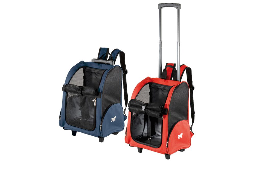 Praticissimo il trasportino trolley&zaino per il gatto o il piccolo cane che ti seguono ovunque, in nylon con maniglia telescopica [Ferplast, cm 32x28x51h € 63 circa]
