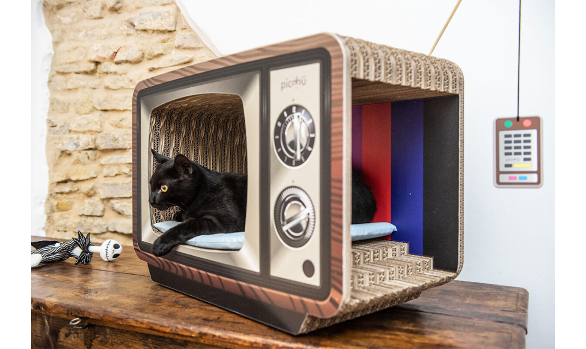 • Cuccia a forma di televisione con tiragraffi di Picabù. Un tuffo nel passato con un tocco vintage per questa cuccia, in cartone multistrato, con la quale il tuo amico potrà giocare e all’interno della quale rilassarsi in tutta tranquillità. Traspirante, compatto e flessibile, ma allo stesso tempo resistente ed idrorepellente.