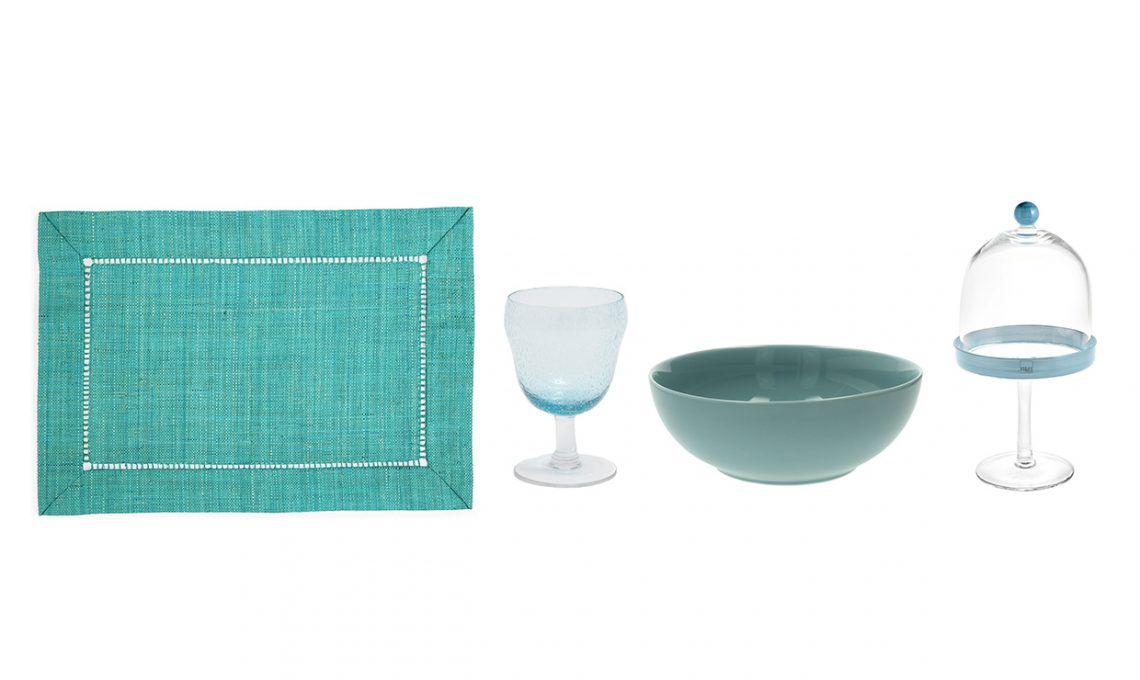 Questa tavola unisce il design Déco a uno spirito mediterraneo e lieve dato dal punto di azzurro perfetto che parla di un'eleganza 'con brio', perfetta per una cena chic come per una serata in vacanza con gli amici.
