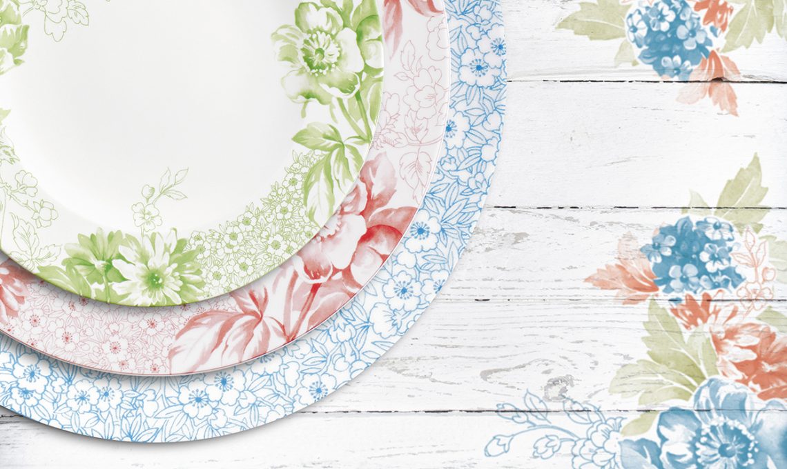 Non è un caso che sia il più classico dei decori: la fantasia botanica racconta il matrimonio felice tra la tavola e i fiori. Decori e nuance strizzano l'occhio alla primavera per una tavola romantica e perfetta per un'apparecchiatura in casa e all'aperto.