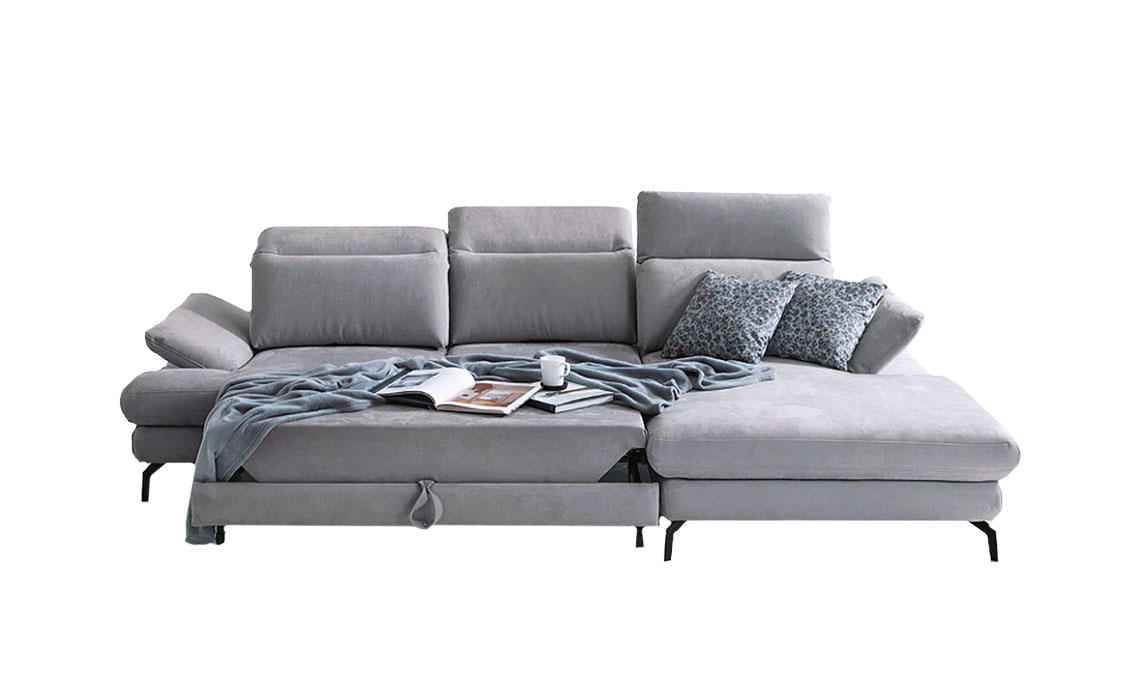 Il divano Dakota ha schienali basculanti e vano contenitore [Federici Sofà, cm 288x179/184x83/101h]