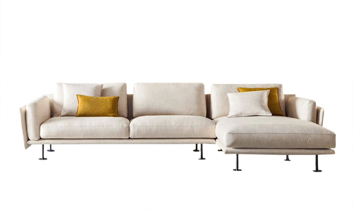 Una libreria passante in rovere si erge leggera e funzionale, separando delicatamente gli ambienti del living senza rinunciare alla luminosità e all'ampiezza. Accanto a essa, un divano e un tavolino minimalista si uniscono in un'armoniosa composizione, mentre tessuti morbidi e accessori materici aggiungono calore e comfort al contesto.