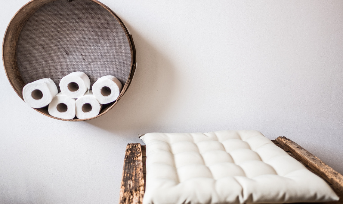 - Una piccola scaletta: ideale per tenere in ordine gli asciugamani in bagno. Puoi mantenere il colore naturale del legno grezzo o colorarla, sarà comunque la protagonista della parete.