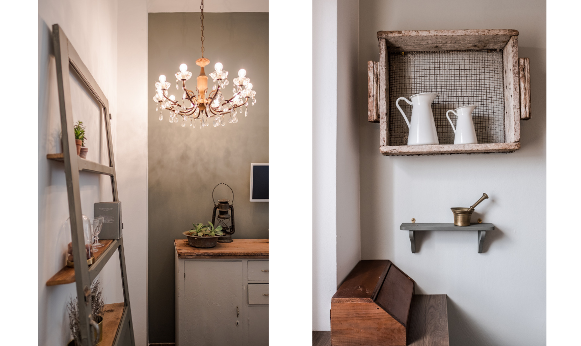 In Binidittu, il contrasto fra vintage e moderno crea un equilibrio perfetto. Katia ha scelto degli oggetti che la riportano indietro nel tempo, a quando era bambina, ma li ha affiancati a mobili contemporanei.