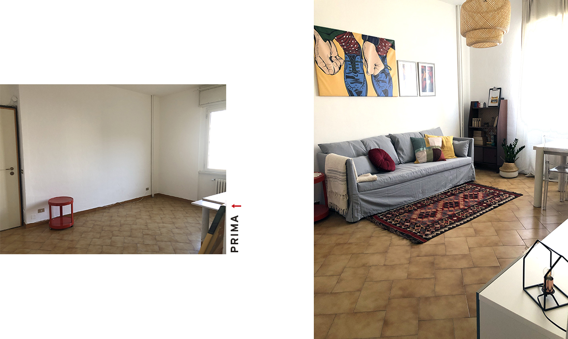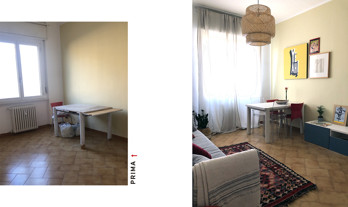 Ho avuto l’opportunità di sistemare un piccolo ma grazioso bilocale in un condominio di fine Anni'70 e con poche mosse l'ho reso attuale e allegro. I soffitti sono alti, una fortuna visto che aiutano a rendere le stanze meno opprimenti. Il vero tallone d'Achille sono i pavimenti vecchio stile che, per tempo e budget, non possono essere cambiati e che ho cercato di legare maggiormente con il contesto.