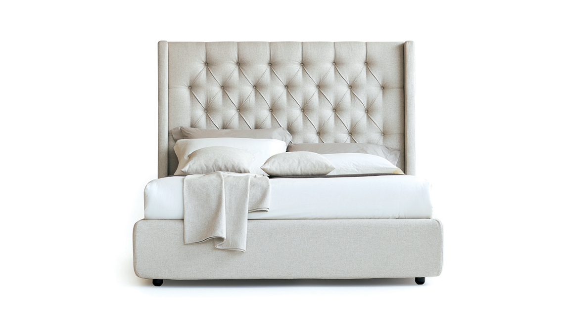 Il tocco di design? Sì a un letto con testiera da diva ma funzionale e a tessili caldi e raffinati, con... lampi di rosso!